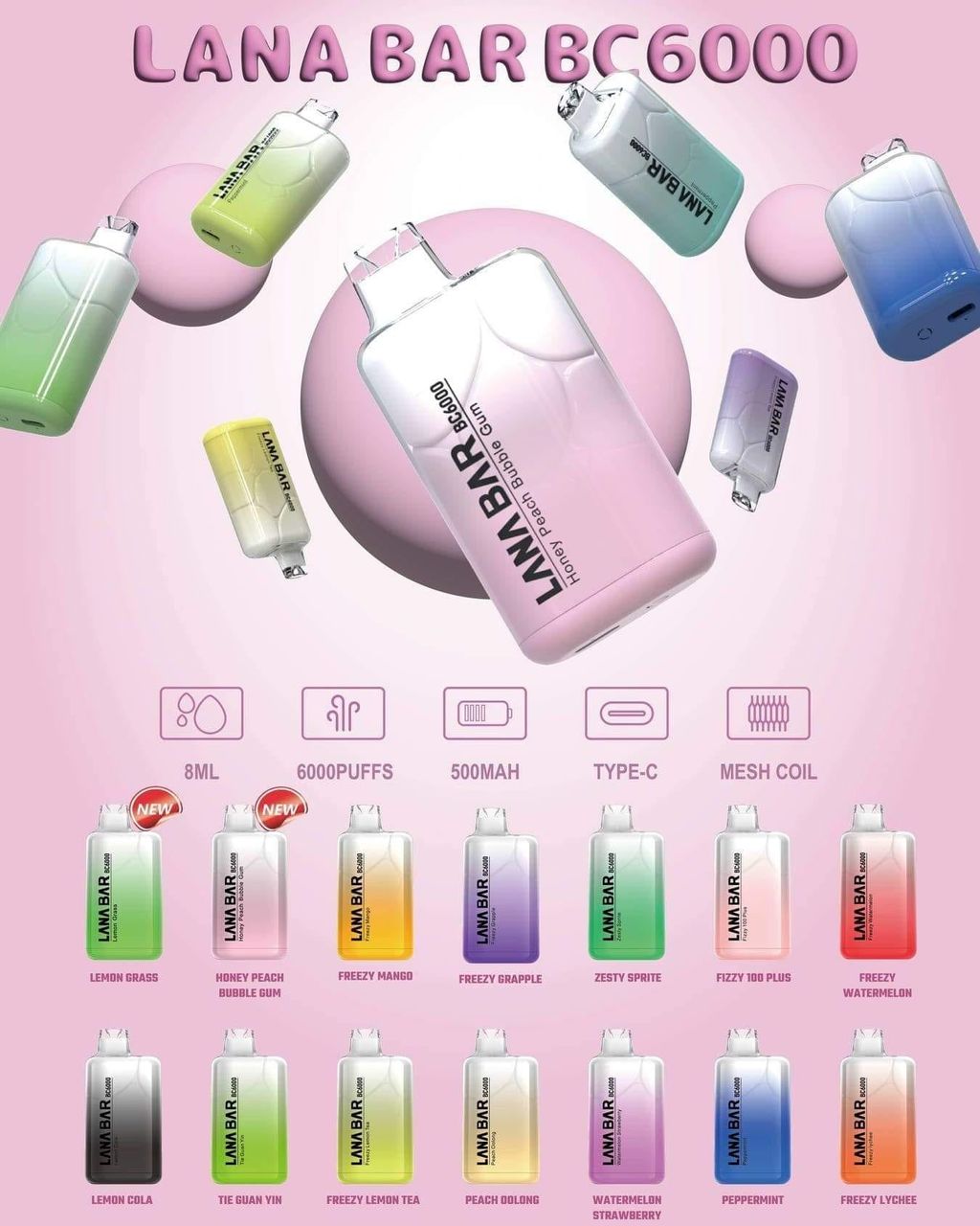 【LANA BAR BC 6000口】大容量新款拋棄式6000口-超涼款一次性電子煙-ILIA糖果雲煙館